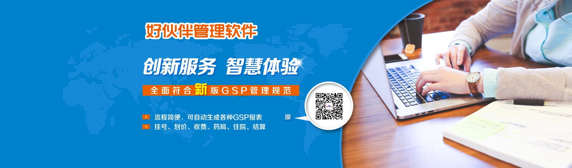 好伙伴新版GSP医药管理软件,全面符合新版GSP管理规范,流程简便,可自动生成各种GSP报表。医院诊所管理软件用于挂号、划价、收费、药局、住院、